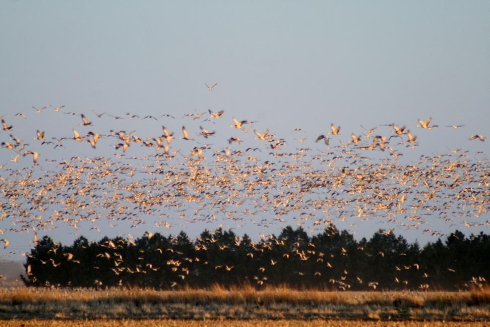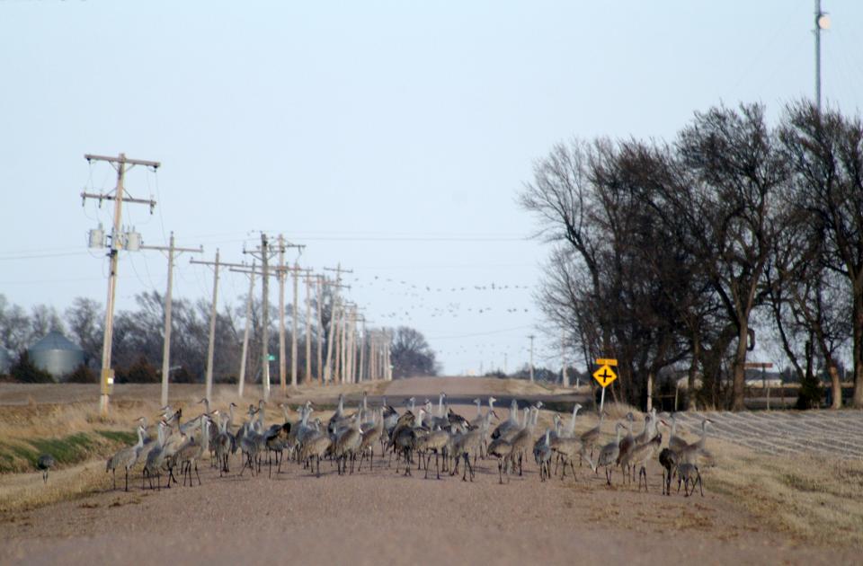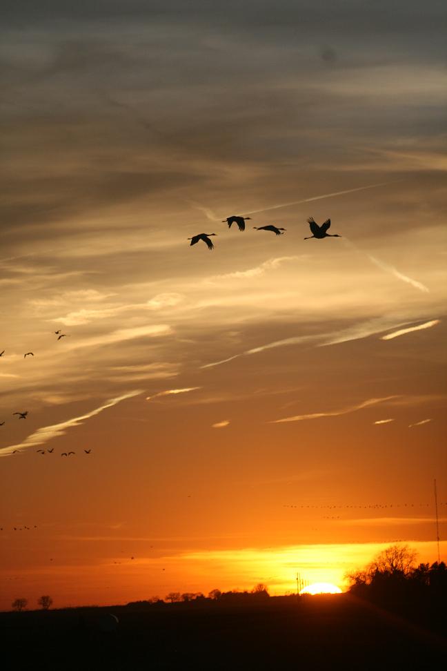 And then you stand out there among wave after wave of tens of thousands of birds, each calling out to the other with loud, ancient voices that echo from horizon to horizon. You feel the cool south breeze against your face, knowing that if you, too, had wings it would take very little to lift off with the flocks and settle toward the Platte River for night. There, among birds that mate for life and have been coming through this small area for millions of years, you feel power rise up within. Power you never knew you had but suspected was there. The power is joy and it is also rage. The power is compassion and defiance. You want to go screaming into the nearest city, asking why we pollute, why we turn over the earth, why we have lawn, why we don't see the community as preservation and healing for the self.